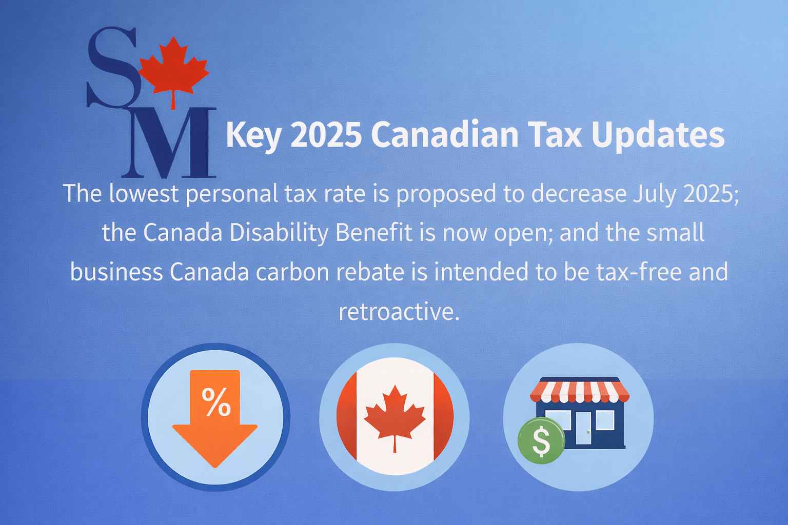 Recent federal tax updates for 2025 include several changes that may affect individuals and small businesses. The government has proposed reducing the lowest personal income tax rate effective July 1, 2025, while applications are now open for the new Canada Disability Benefit for eligible working-age Canadians. The CRA has also launched a new self-evaluation tool to help taxpayers assess eligibility for penalty and interest relief. In addition, the government has confirmed that the Canada carbon rebate for small businesses is intended to be tax-free and retroactive, with amended corporate tax returns expected once legislation receives Royal Assent.