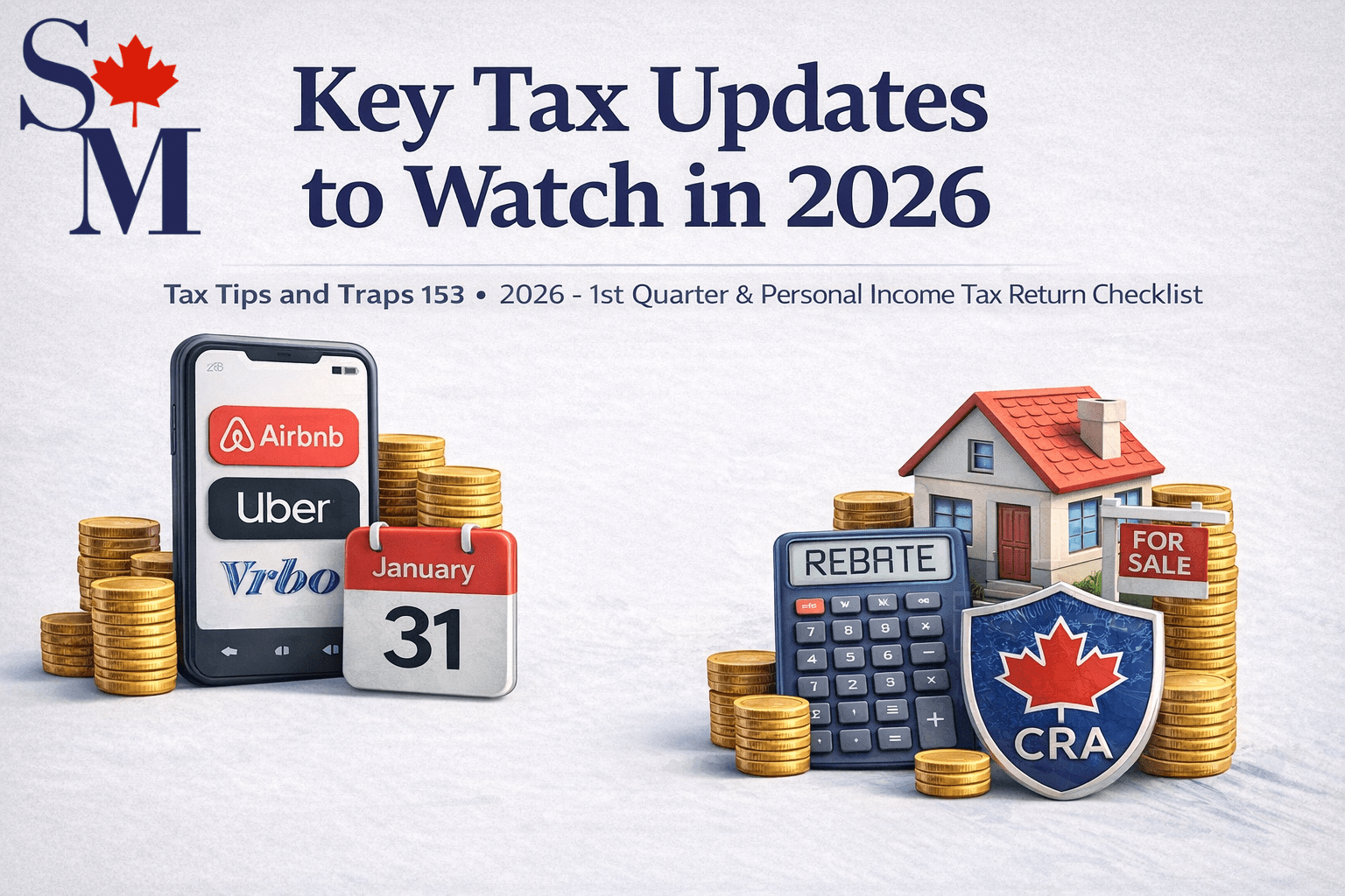 Key CRA updates for 2026 highlight increased reporting from digital platforms, expanded GST/HST rebates for first-time home buyers, stricter rules for non-resident property sales, and warnings against aggressive tax avoidance schemes.